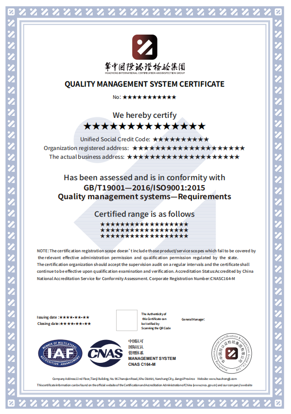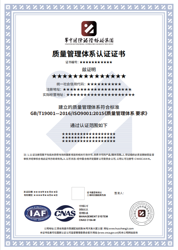 (4)按照ISO9001:2015标准的要求建立文件化的质量管理体系; 已经按照文件化的体系运行三个月以上,并在进行认证审核前按照文件的要求进行了至少一次管理评审和内部质量体系审核。